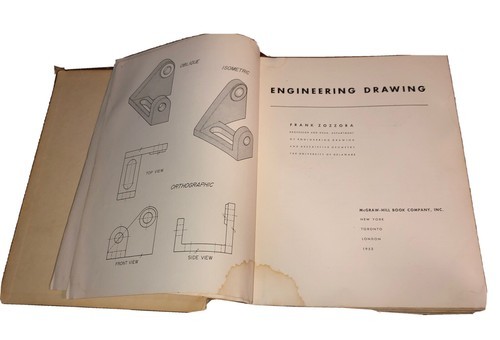 Engineering Drawing By Frank Zozzora 1953 Hardcover (Rough Shape).