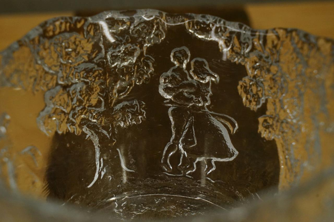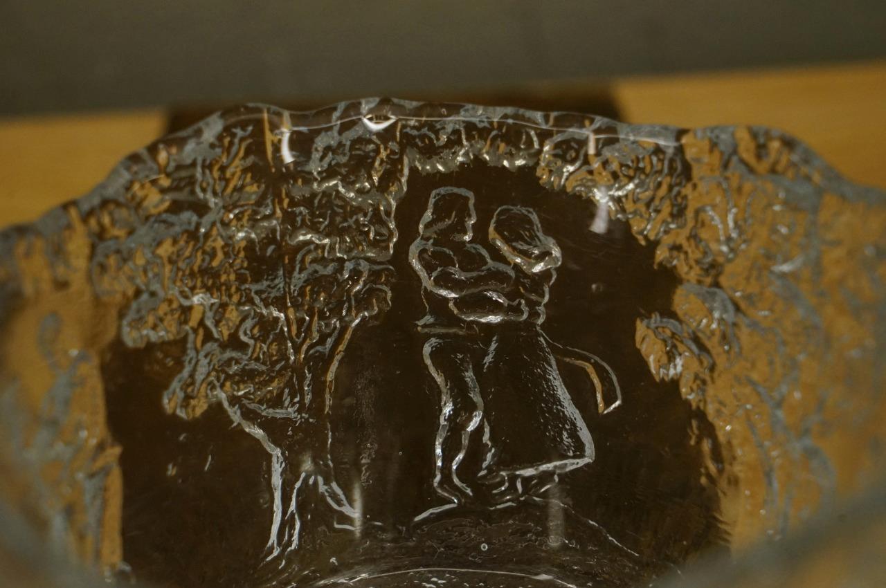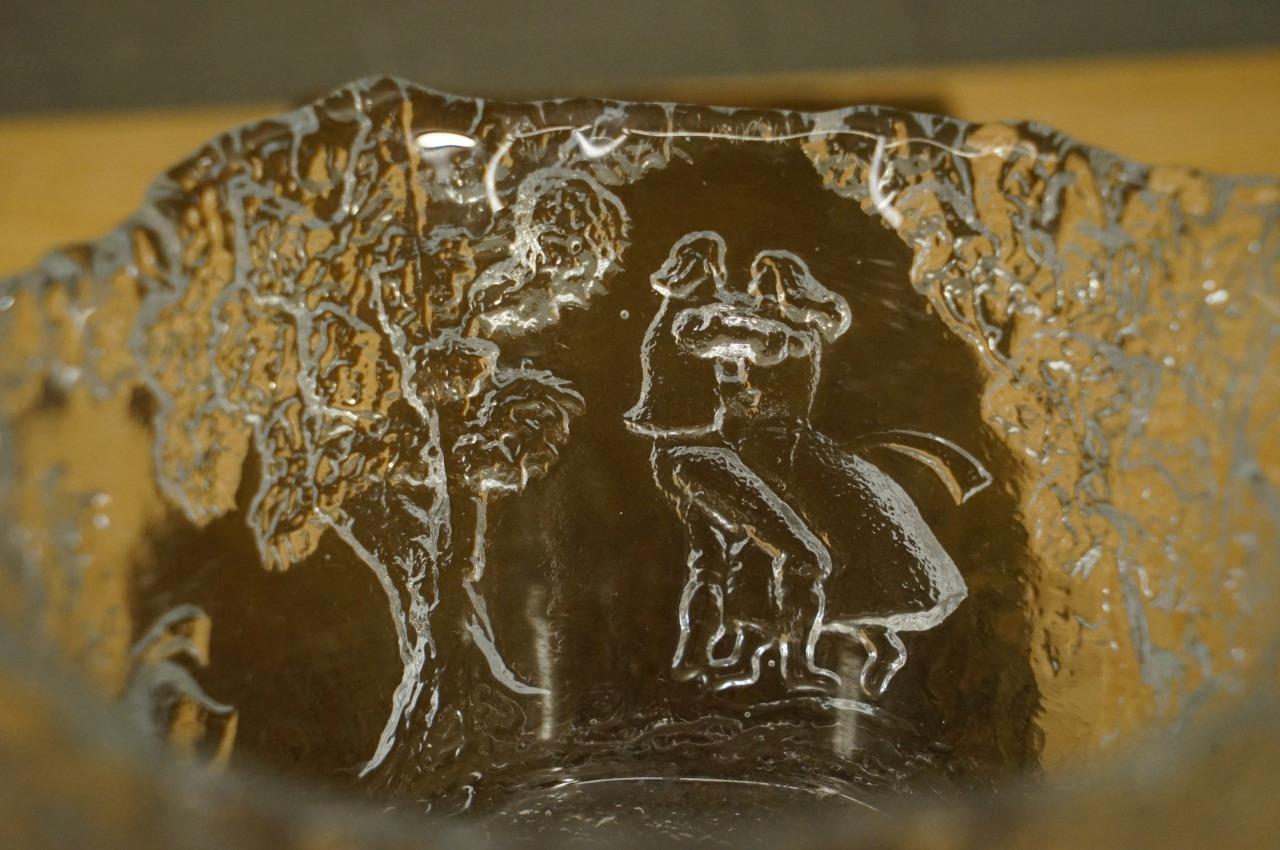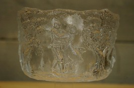 Studio Art Glass KOSTA BODA Rhapsody Bowl King Charles Sceptre Kung Karls Spira Vasterbotten and a central flower etched in the base. Measures 5.5" by 3.75" tall. Trees and dancing couples.