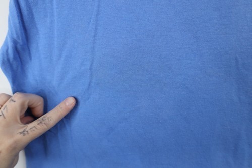 Bleach blemishes/stains front. Blemishes shoulders, back top. Sun faded collar, shoulders. Collar, shoulders, arms discolored. Graphics, color faded. Pilling. Loose threads collar