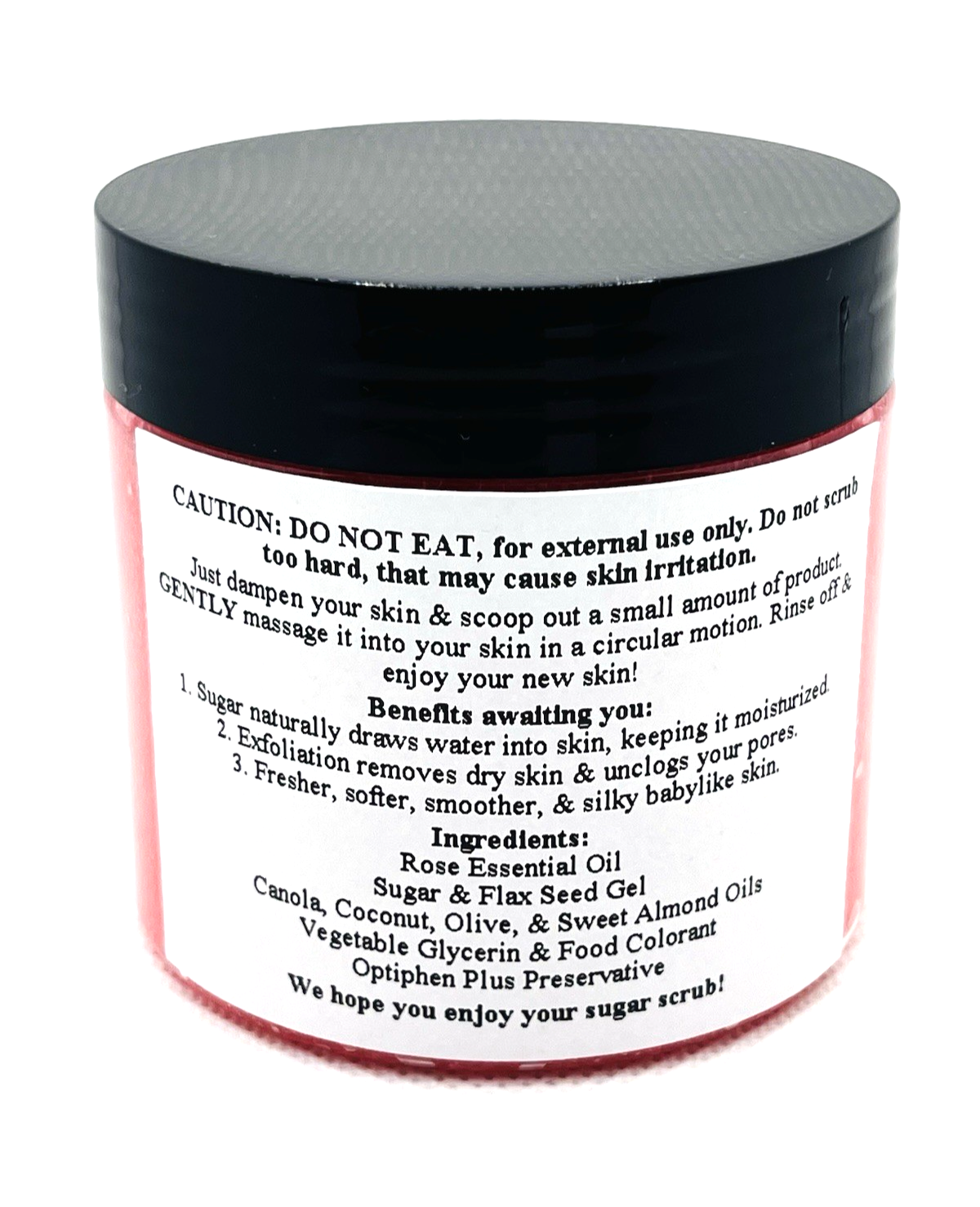 DO NOT EAT, our Soft Sugar Scrubs are for EXTERNAL USE ONLY. Do not scrub too hard, that may cause skin irritation.