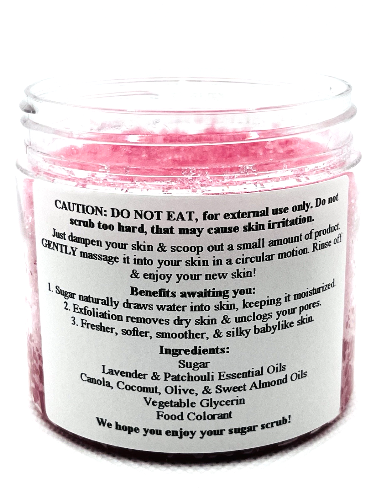 DO NOT EAT, our Sugar Scrubs are for external use only. Do not scrub too hard, that