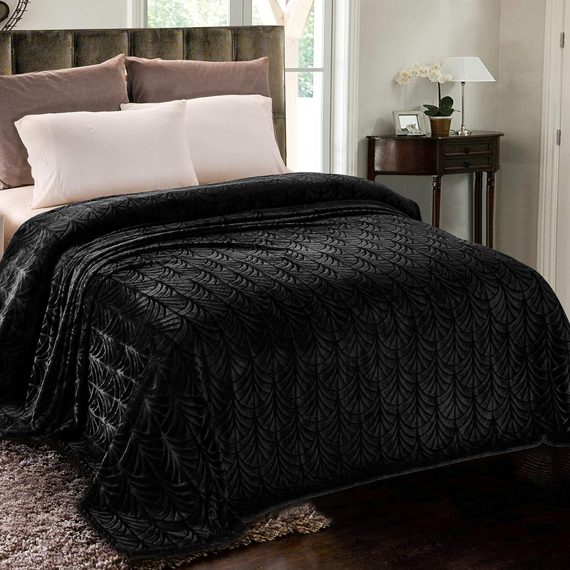 Flannel Fleece Queen Size Bed Blanket, Soft Velvet Lightweight B