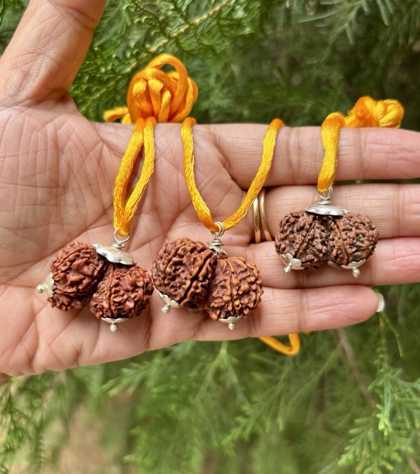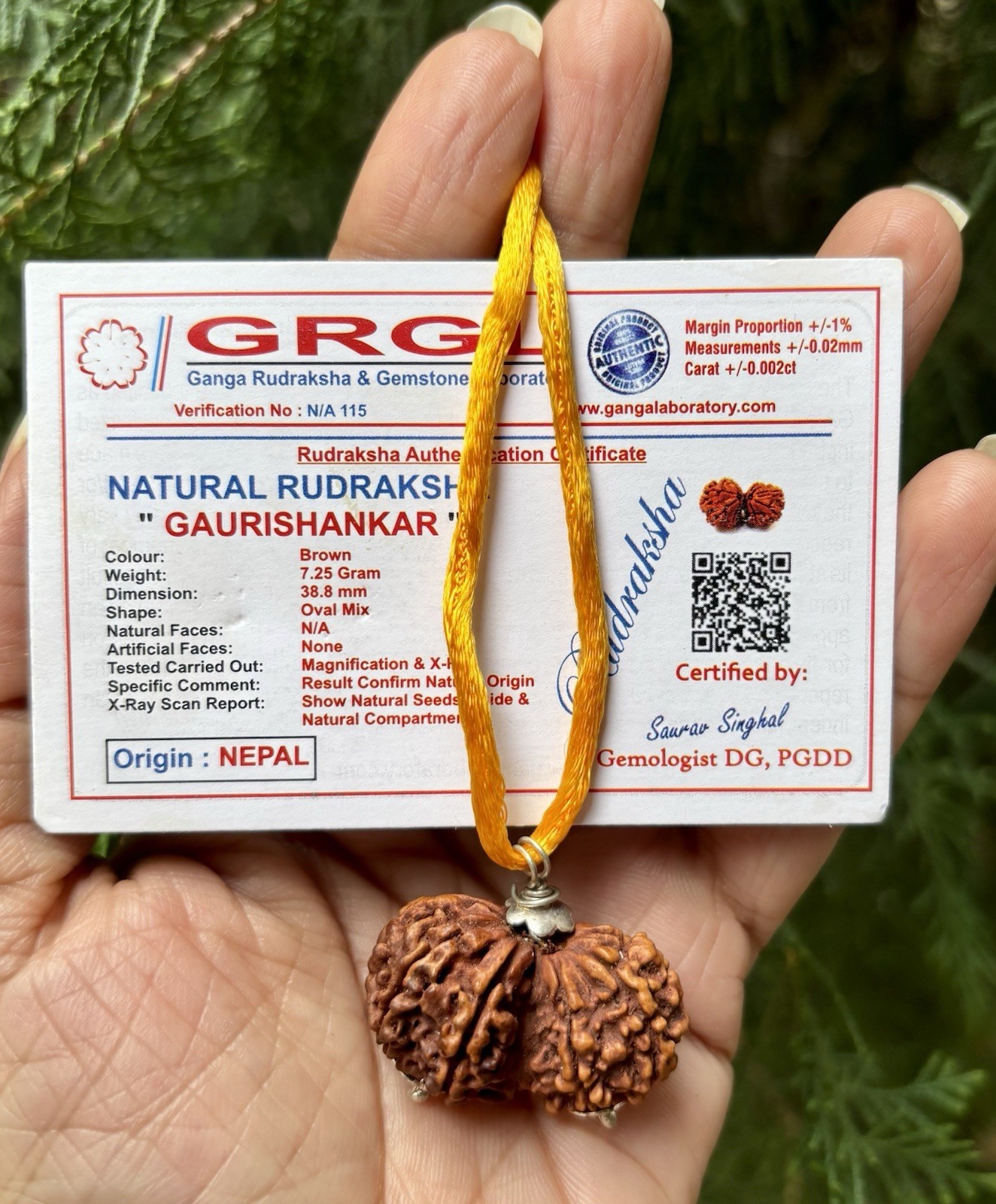 LAB CERTIFIED Natural RUDRAKSHA Gauri Shankar Rudraksh Pendant in Silver 1 Piece