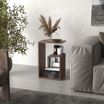 Everet 25' High 3-Tier Side Table - Dark Walnut & White