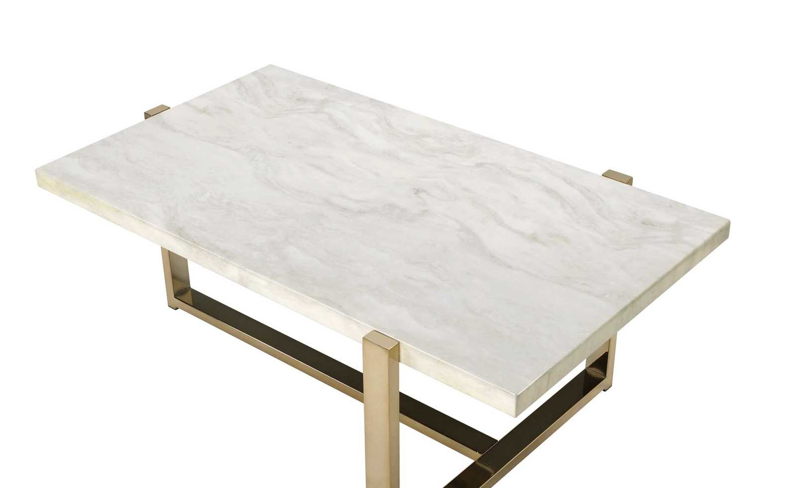 Feit Faux Marble Top Coffee Table with Champagne Finish - Modern Living