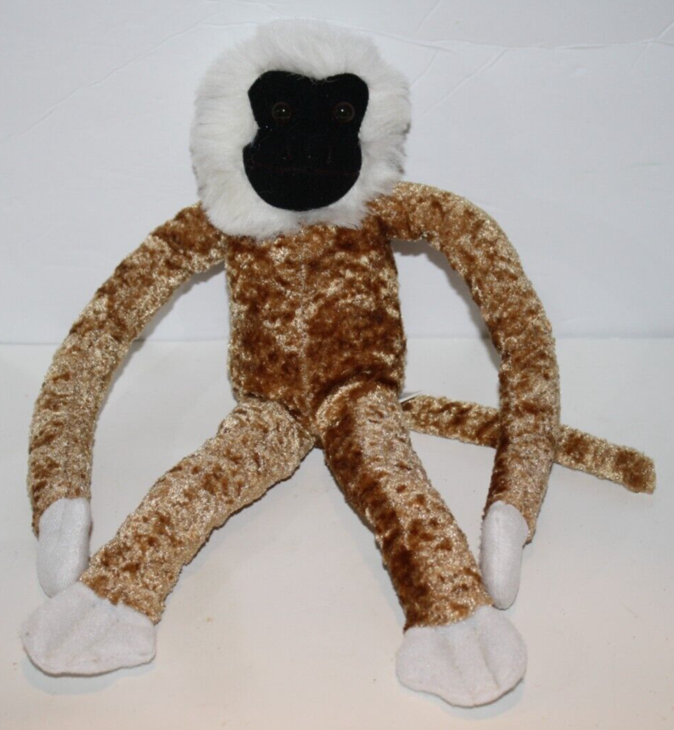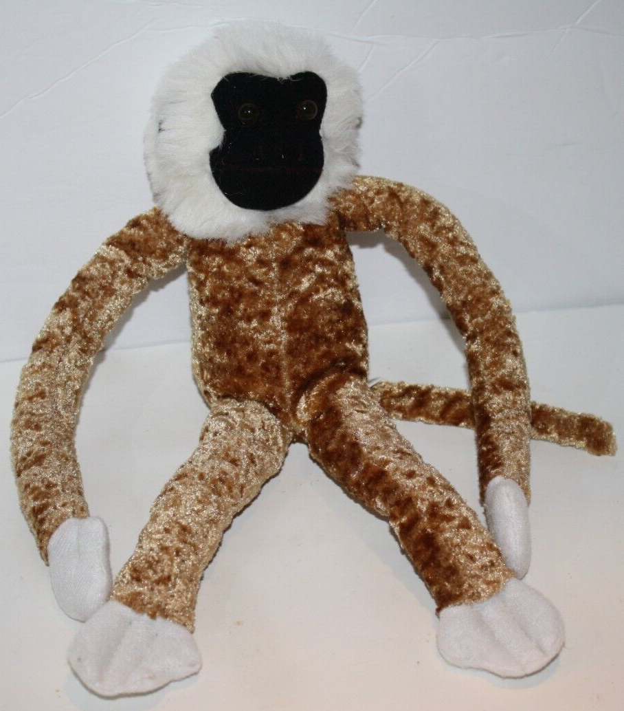 Dollar Tree Hanging Monkey 13" Golden Brown Black Face White Beard Soft Stuffed