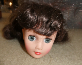 Very nice, vintage 1970s era, hard plastic, 20 marked neck, long dark brown/black hair with sleepy eyes, girl character doll head in the pictures. About 3 1/2 inches tall. Very nice shape, no wear to note. Zoom in for details.