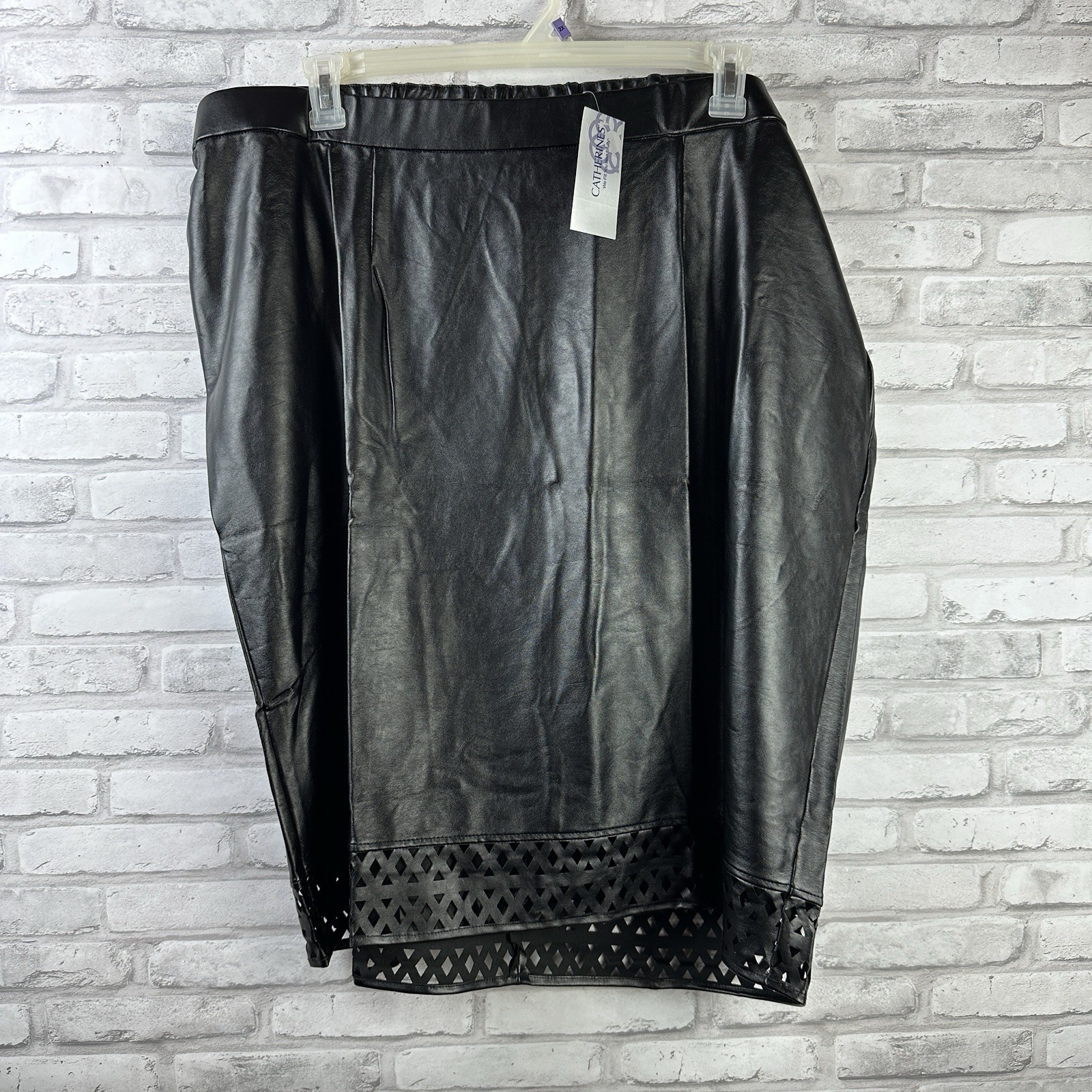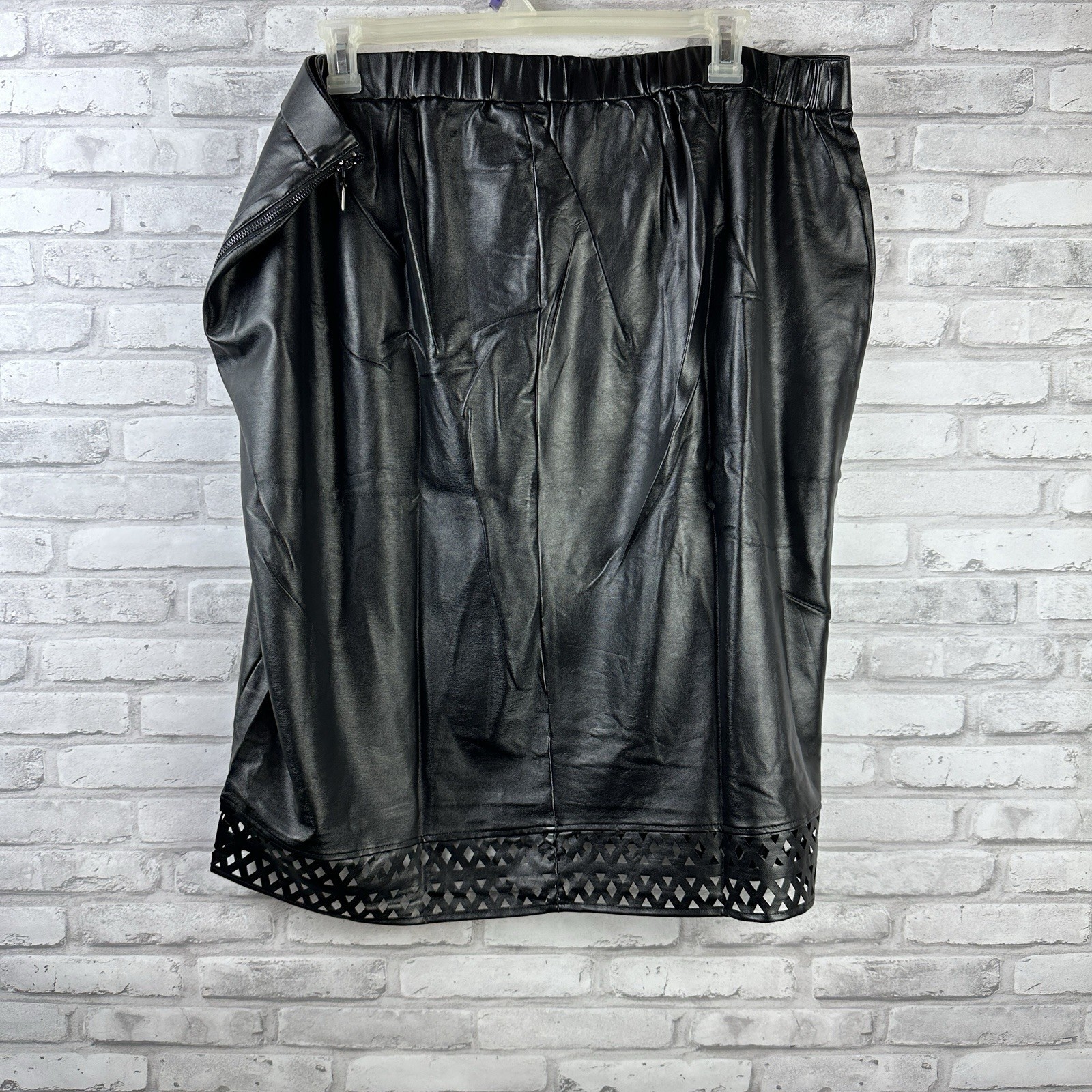 Catherines Black Label Faux Leather Skirt 2X Elastic Waist Laser Cutouts NWT