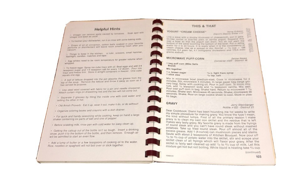 The Men Are Cooking Book District #21 OES 1994 Spiral Bound Book