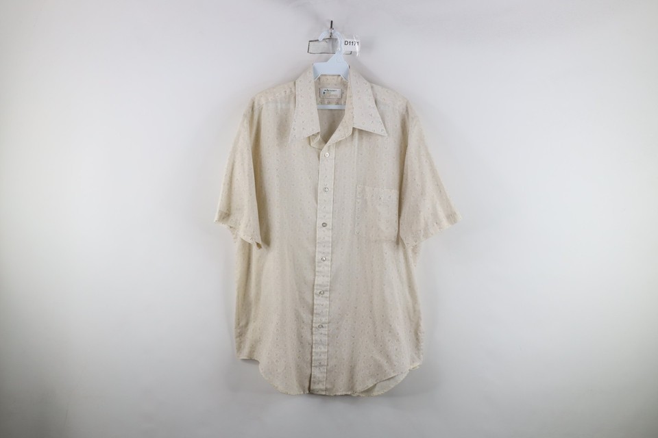 Vtg 70s Streetwear Mens 16.5 Sheer Flower Short Sleeve Collared Button Shirt USA