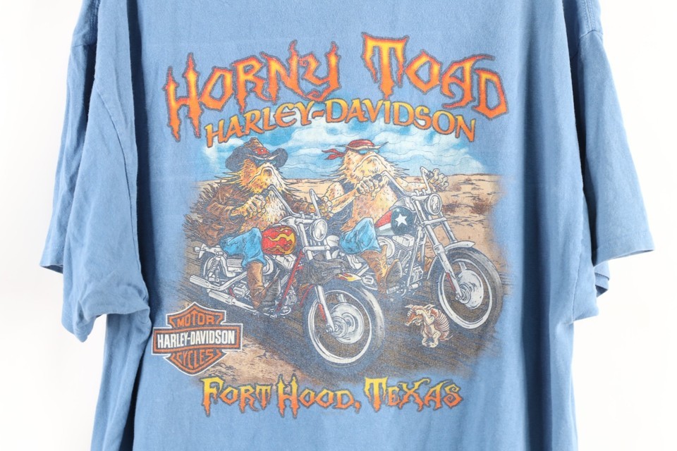 Harley Davidson Mens Large Distressed Spell Out Horny Toads Double Sided T-Shirt