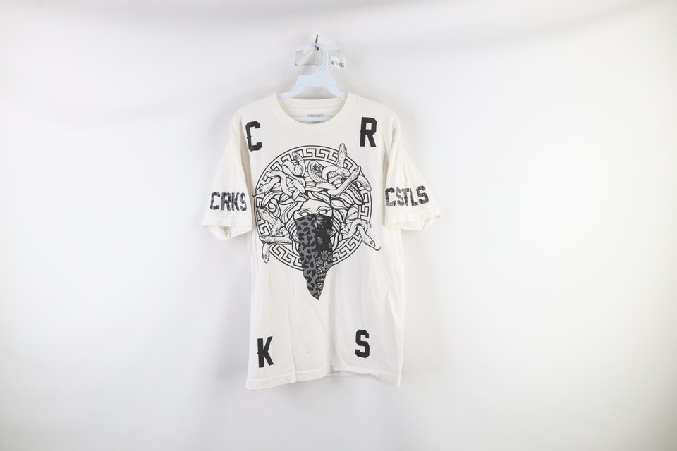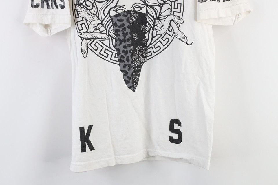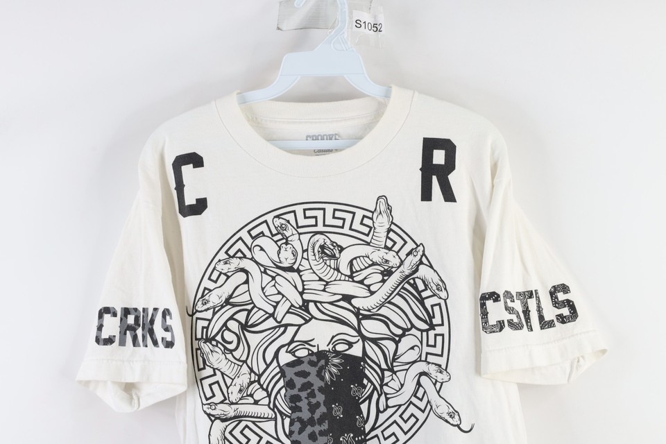 Crooks and Castles Mens Medium Distressed Spell Out Medusa Head T-Shirt White