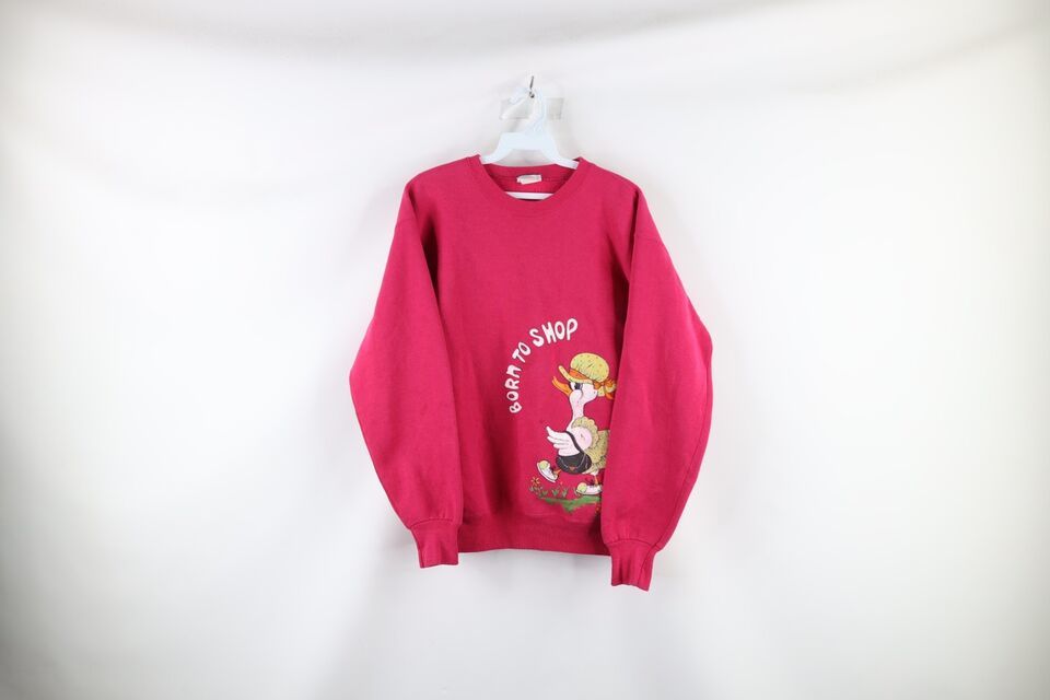 Vintage 90s Streetwear Womens Medium Spell Out Born To Shop Duck Sweatshirt USA