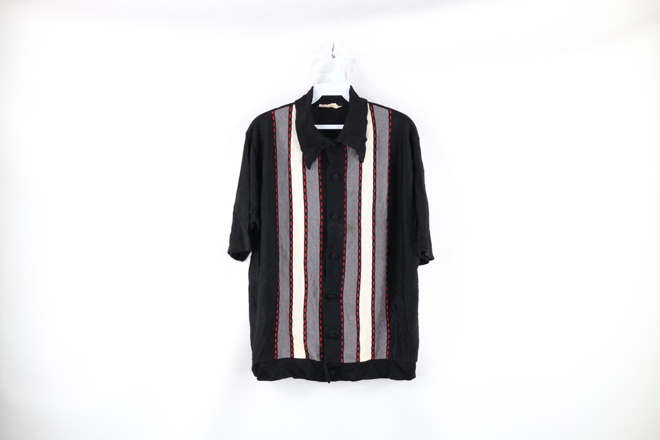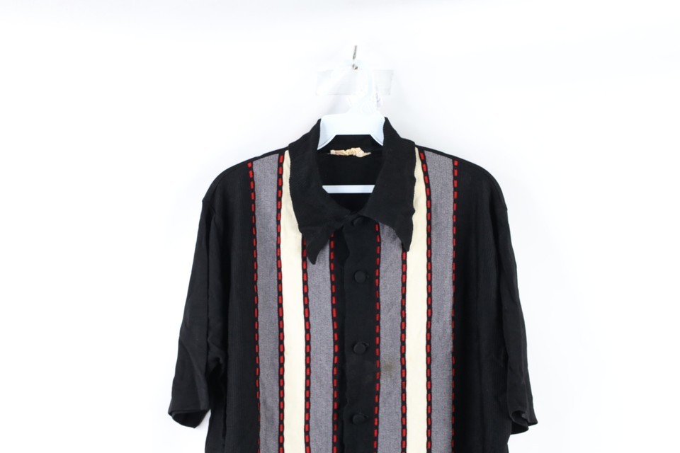 Vintage 50s Rockabilly Mens Medium Striped Panel Knit Collared Button Shirt USA