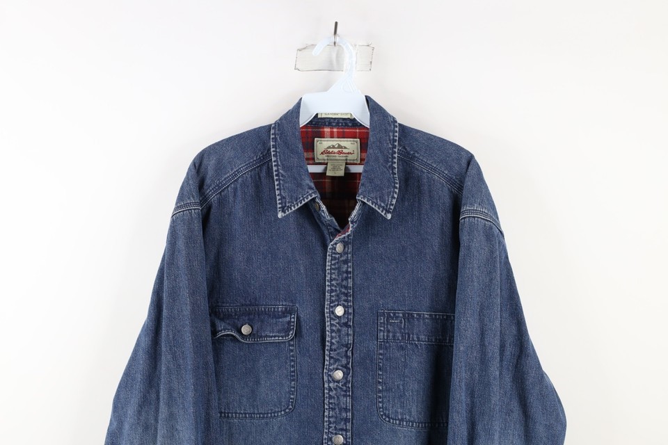 Vtg Eddie Bauer Mens L Heavyweight Flannel Lined Denim Shirt Jacket Jac Shirt
