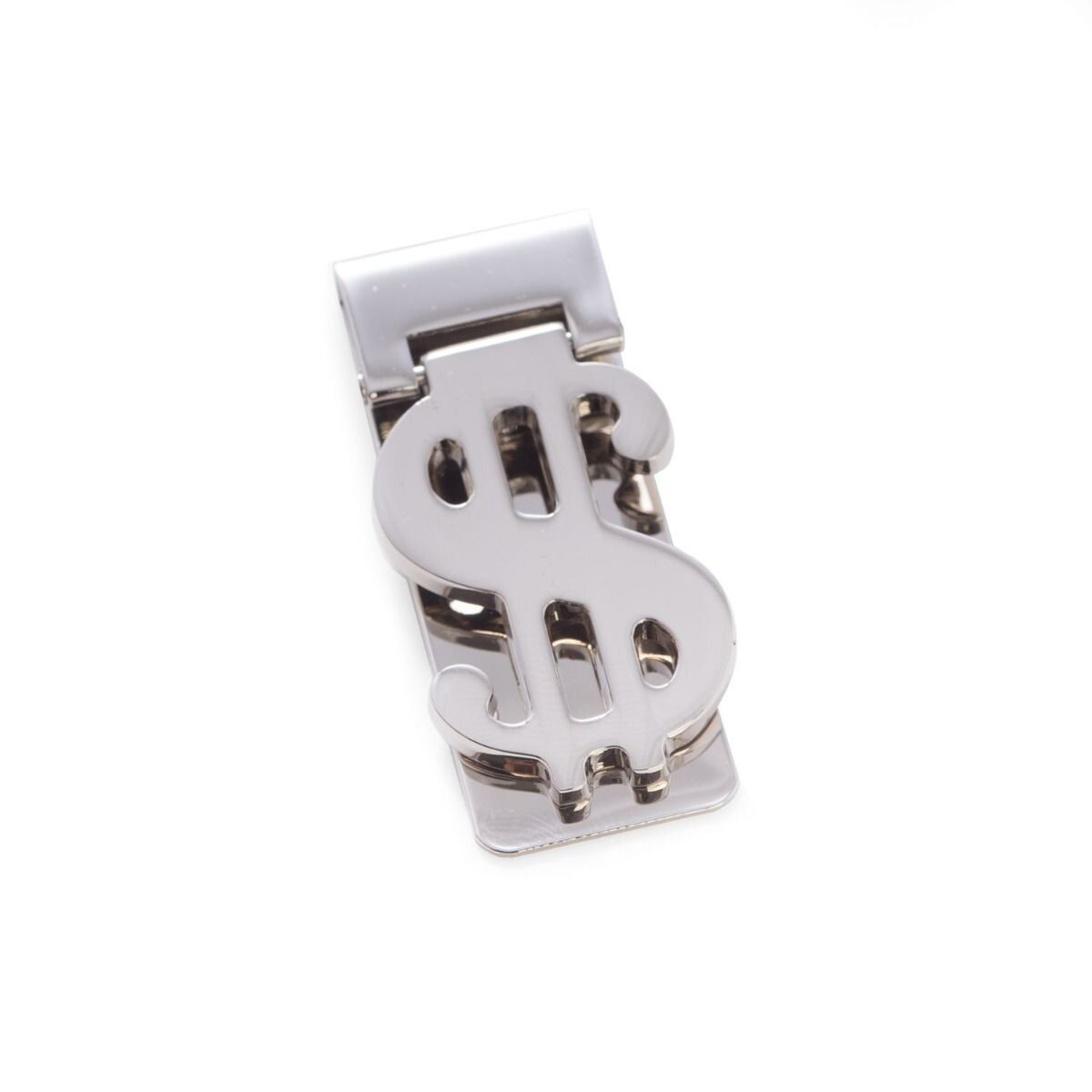 Silver Plated Hinged Money Clip with $ Symbol.