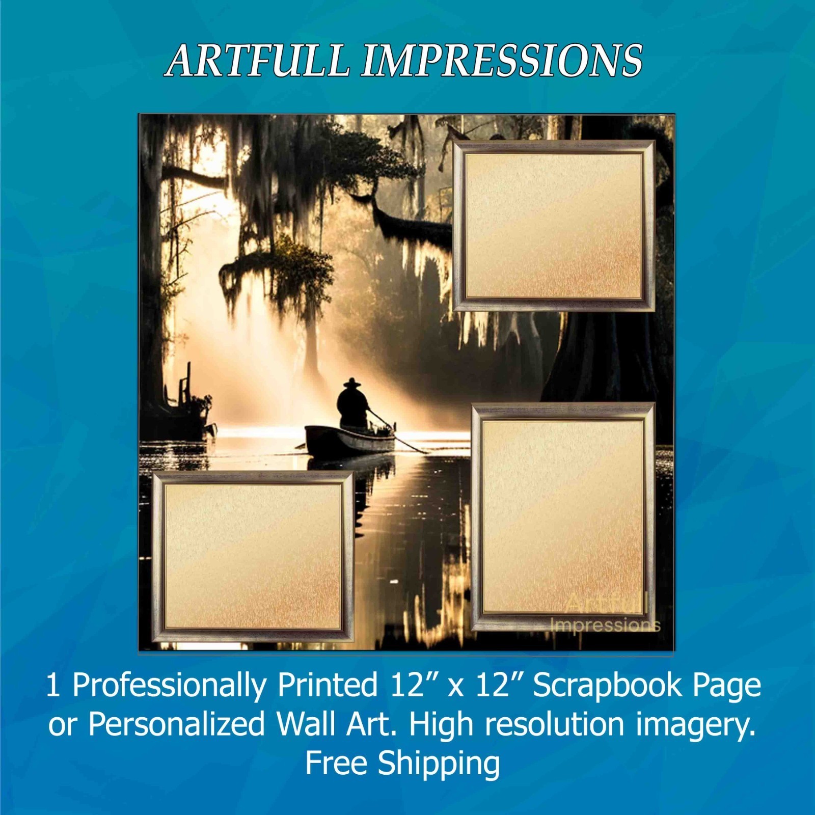 cypress trees and draped Spanish moss. Earthy gold photo mats complement the