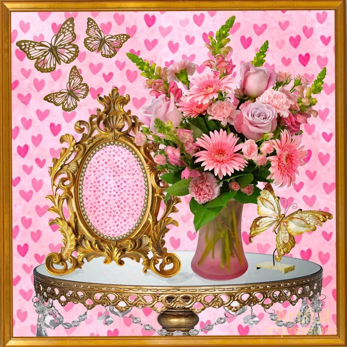 Love - Romantic Heart & Flower Set Personalized Wall Art or Scrapbook Pages
