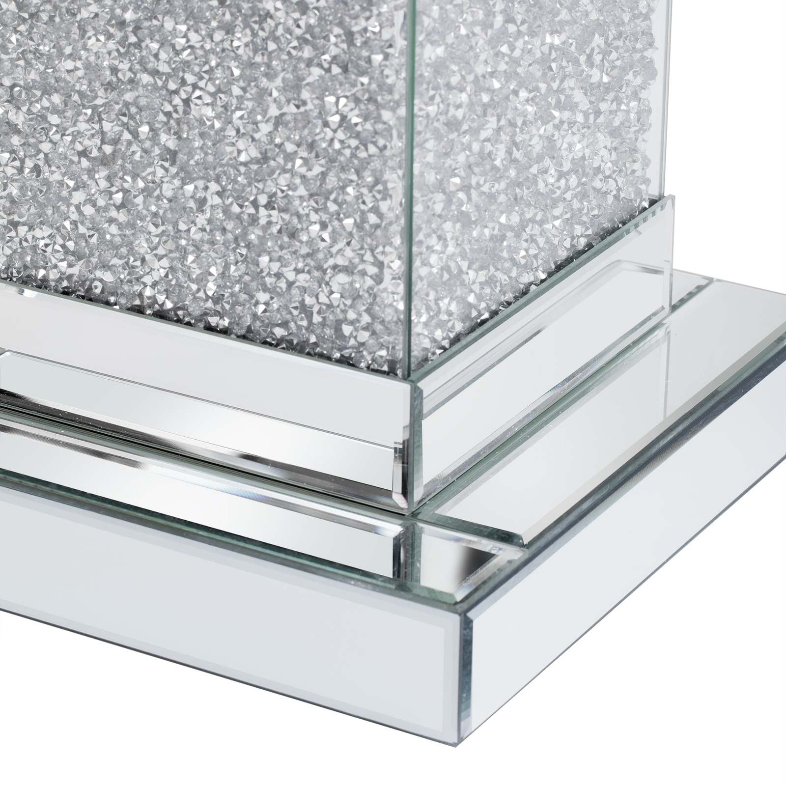 The end table is adorned with meticulously placed crushed diamond accents that sparkle and shine in the light. These crushed diamonds are set into the middle part, creating a dazzling effect that adds a touch of opulence to the piece.