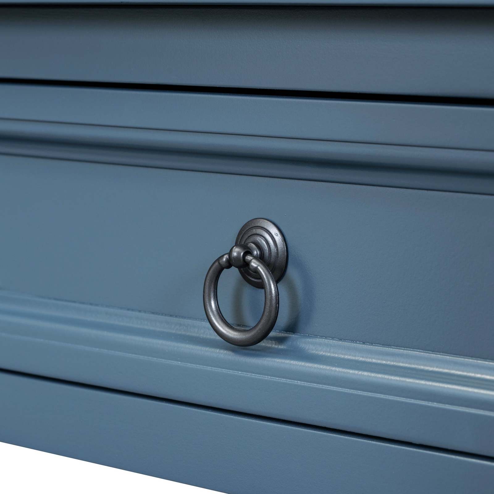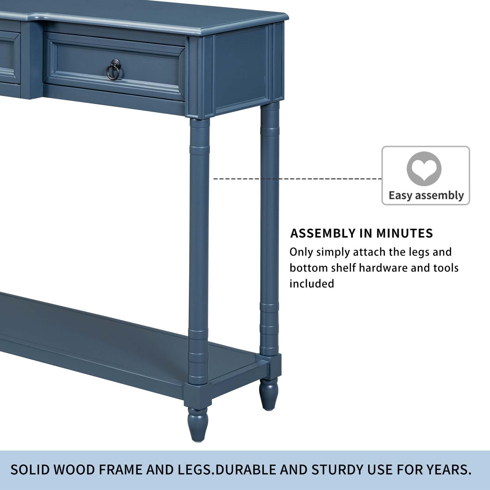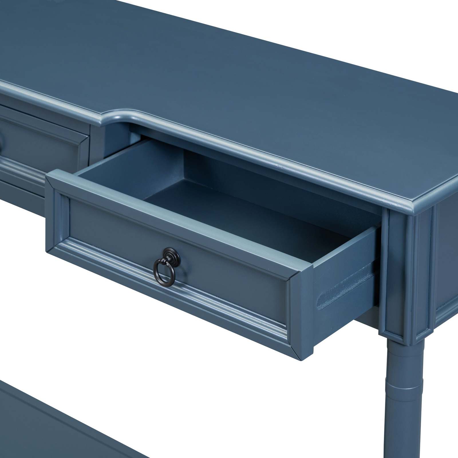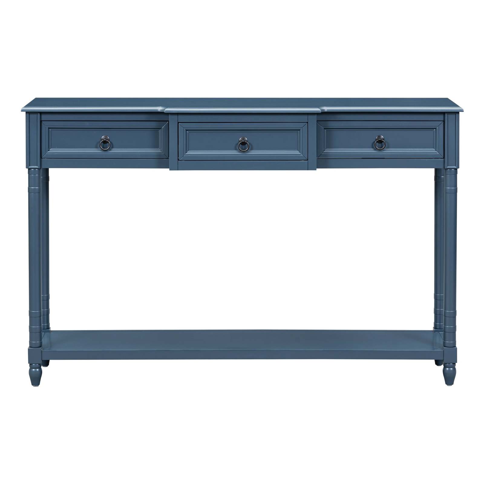 TREXM Antique Navy Console Sofa Table with Drawers, Long Shelf