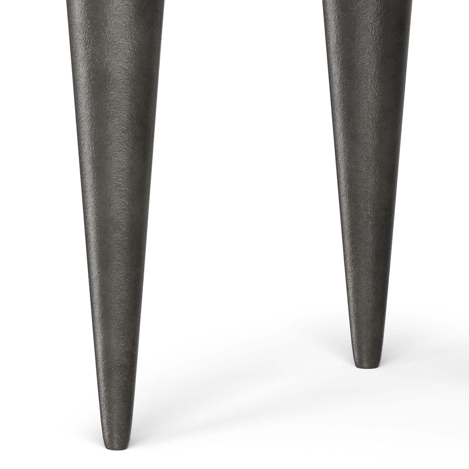 Features a convex top with a round tabletop and three (3) tall, tapered legs.