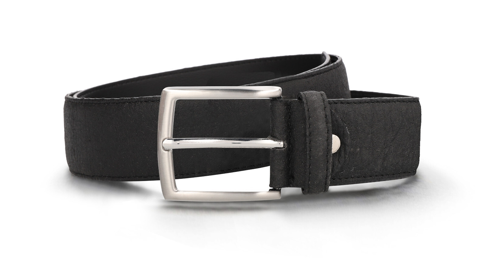 Online Seva Black, cinturon elegante para hombre hecho con Piñatex.