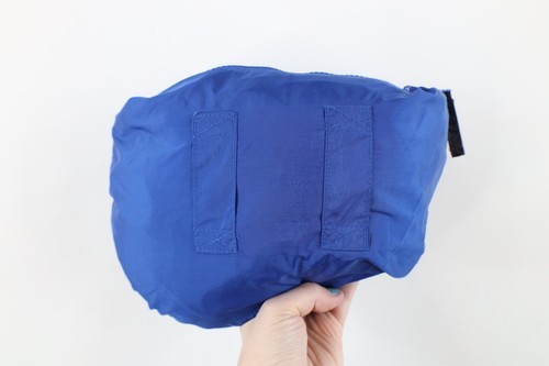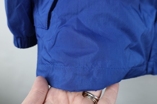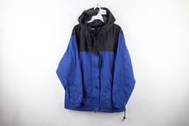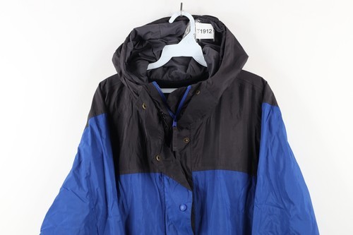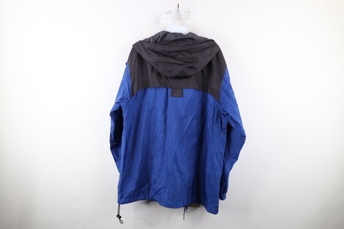 Vintage Cabelas Womens Large Lined Color Block Packable Hooded Rain Jacket Blue