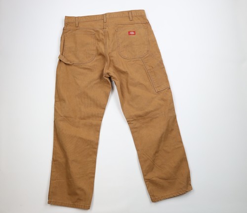 Vintage Dickies Mens 38x30 Distressed Spell Out Wide Leg Canvas Pants Duck Brown