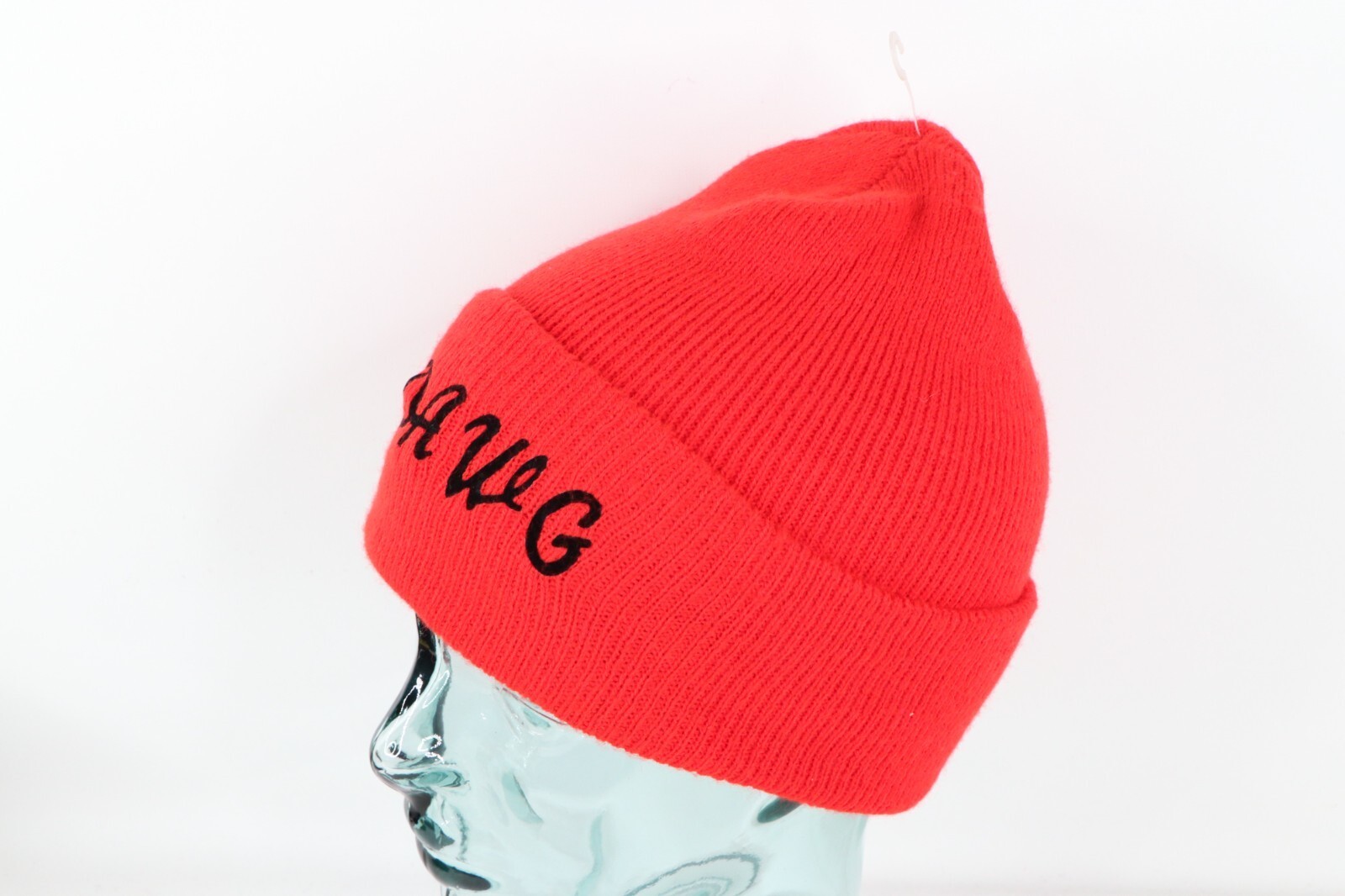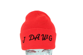 NOS Vintage Streetwear Hip Hop Rap J Dawg Spell Out Knit Winter Beanie Hat Red