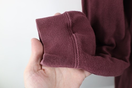Stains left arm. Blemishes front, back. Collar, cuffs discolored. Area by buttons ditressed. Color faded. Pilling