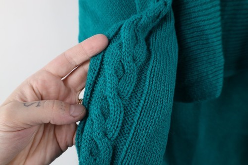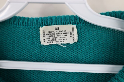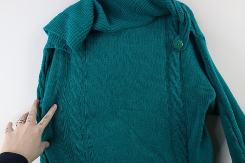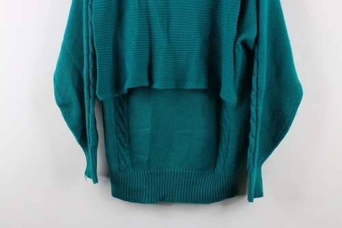 Vintage 70s Streetwear Womens 38 Front Bib Cable Knit Crewneck Sweater Teal