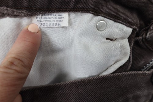 Stains front right leg. Blemishes throughout. Waist, cuffs, pockets discolored. Thread bare fly area, cuffs. Distressed and faded. Color faded
