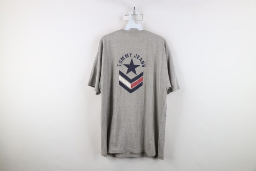 Vtg 90s Tommy Hilfiger Mens Medium Spell Out Star Military Short Sleeve T-Shirt