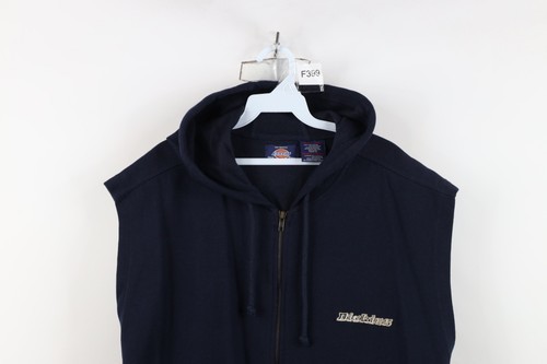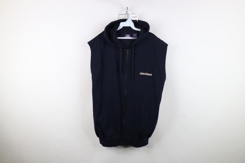 Vintage 90s Dickies Mens Large Faded Spell Out Sleeveless Hoodie Sweatshirt Blue