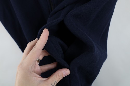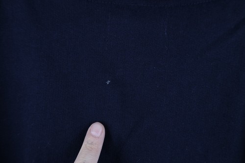 Shoulders blemished. Loose thread back top. Discoloring front, back, hood. String distressed. Color faded. Pilling