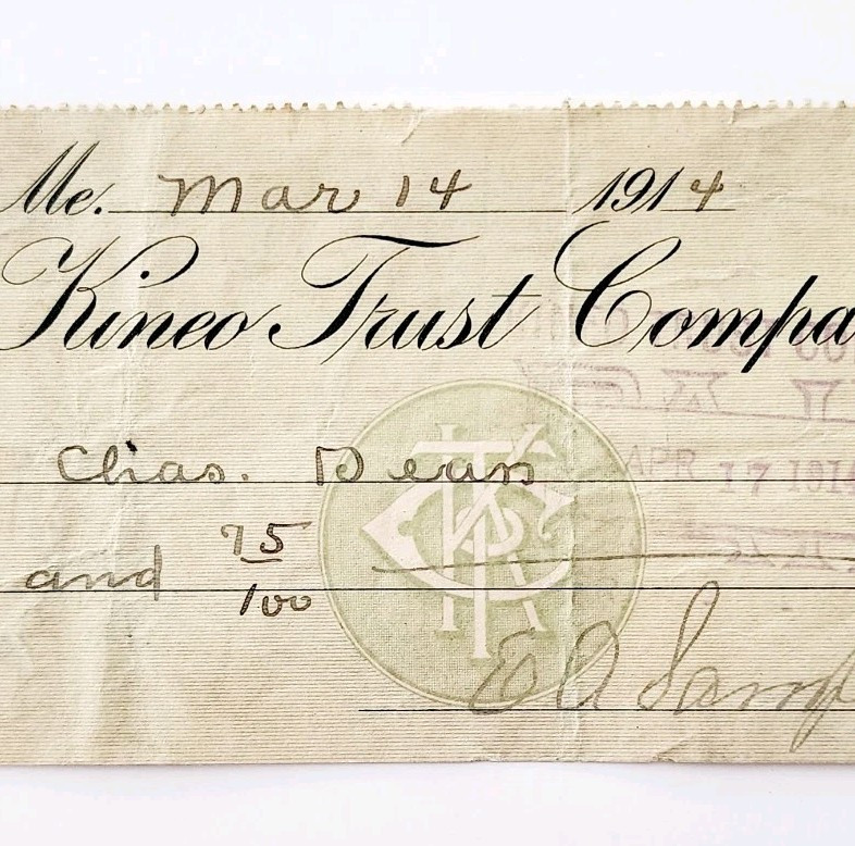 1914 Kineo Trust Company Bank Check E.A. and 48 similar items