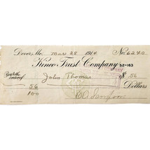 1914 Kineo Trust Company Bank Check E.A. and similar items