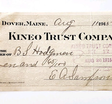 1915 Kineo Trust Company Bank Check E.A. and similar items
