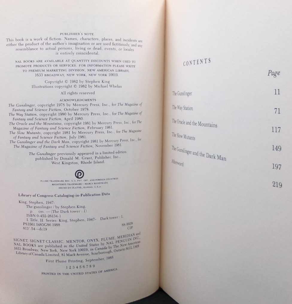 Stephen King THE DARK TOWER: The Gunslinger First Paperback, First Printing 1988