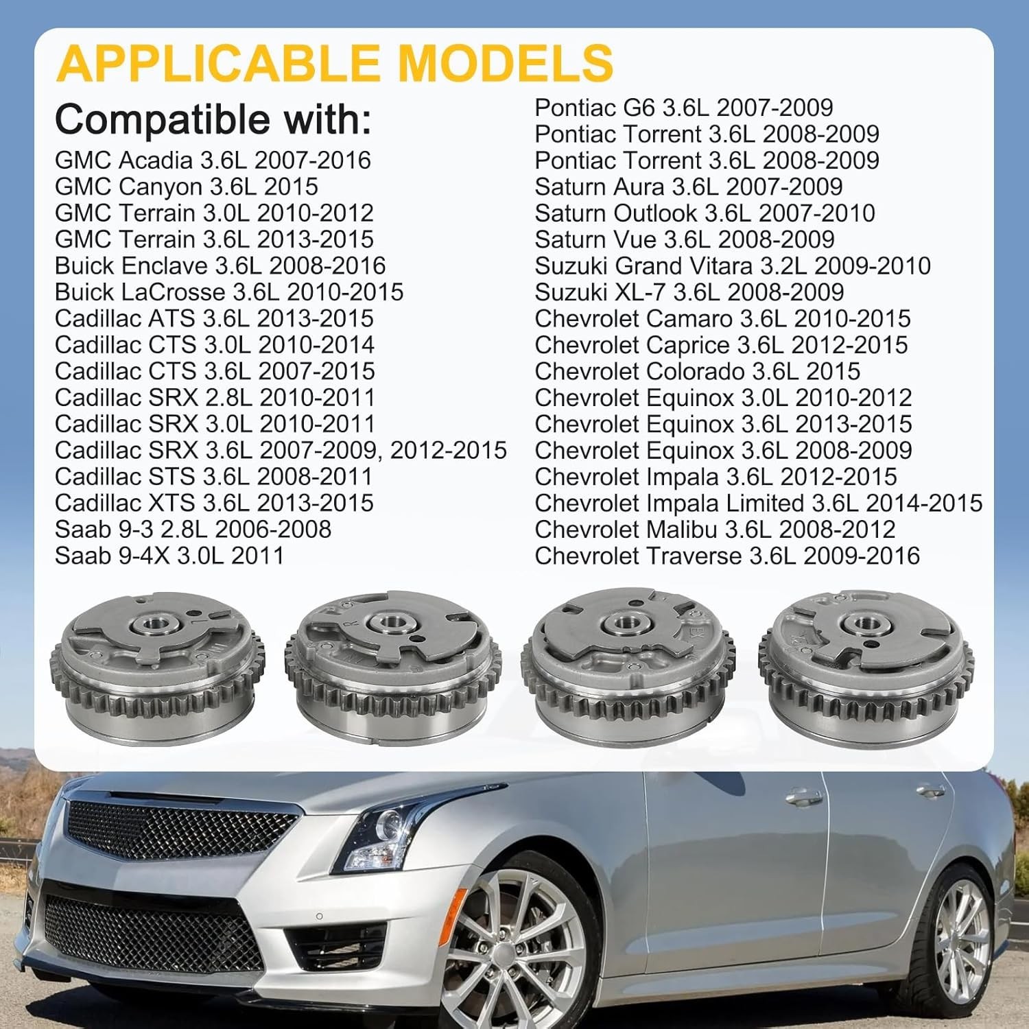 Variable Valve Timing VVT Sprocket 4PCS for Chevrolet Equinox Impala for GMC Canyon Acadia for Cadillac ATS CTS for Buick Enclave 3.0L 3.6L 2007-2016 Replaces# 12624464 12626160 12626161