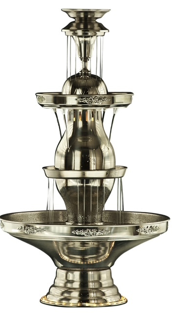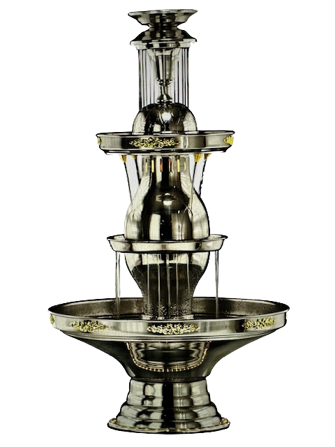 Classic style fountain made from highly durable highly polished stainless steel with enhanced features of elegance. The taller heights and inward spouts create a cascading waterfall-beverage-effect and can accommodate the most versatile glassware options. This fountain can create a unique self-serving beverage station โ which can alleviate the pressure on bar specifically for a signature drink at cocktail hour, happy hour, location for a transitioning space, or a place created just for the kids. All of our fountains serve alcoholic and non-alcoholic beverages: punch, champagne, sweet tea, juices, lemonade and cocktails. In fact, if you can mix it behind the bar, you can pour it into a fountain!