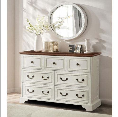 Unique Vintage Design Dressers: Embrace the beauty of vintage aesthetics with this 7-Drawers dresser. Designed with embossed textures and beveled edges on the furniture exterior, our dressers exude sophistication and elegance. The Roman column-style handle provides a classic finishing touch, making it the perfect storage solution for your bedroom essentials.