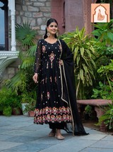 Elevate your party wear wardrobe with this stunning Anarkali gown, featuring intricate thread embroidery and sequence work. The fully stitched and ready-to-wear design ensures a hassle-free experience.