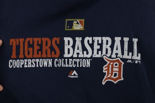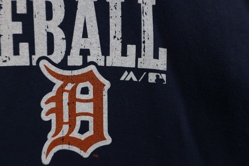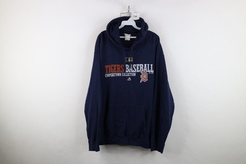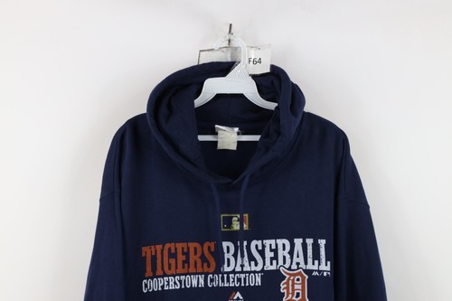 Vtg Majestic Mens XL Faded Spell Out Detroit Tigers Baseball Hoodie Sweatshirt