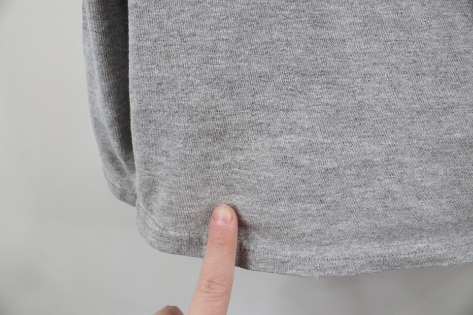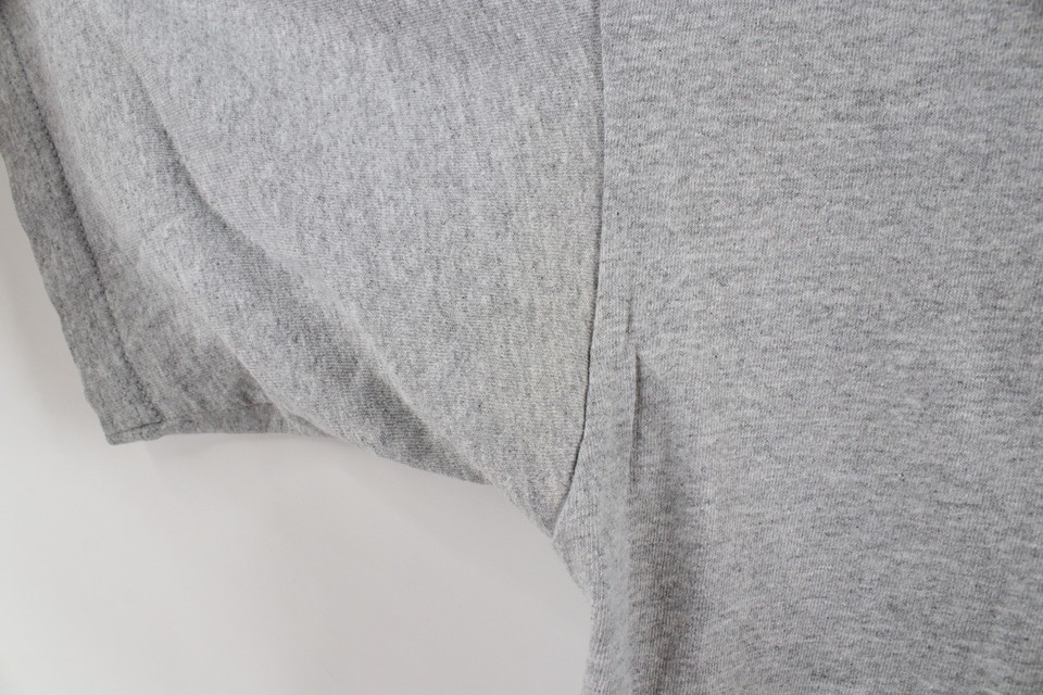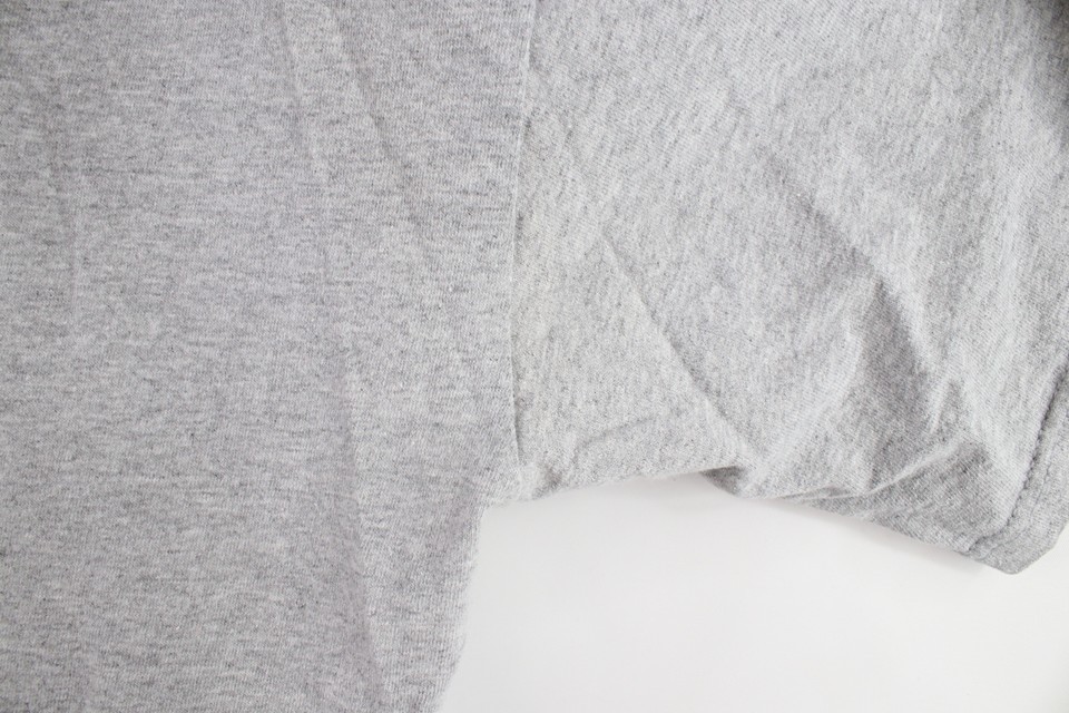 Dark spots front bottom. Armpits discolored. Graphics faded. Color faded