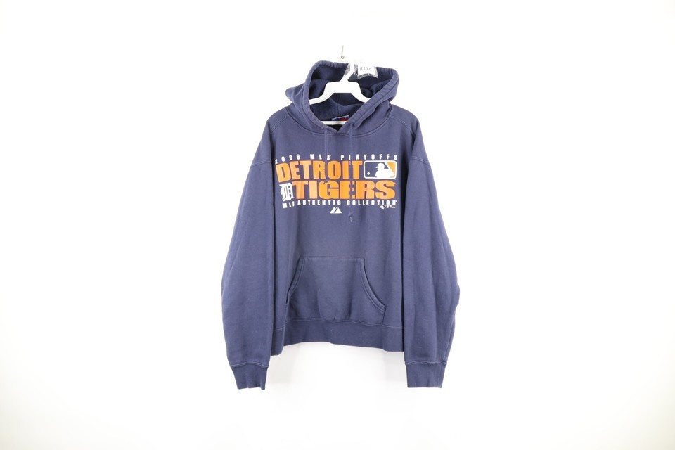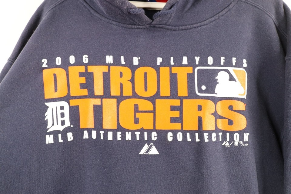 Vtg Majestic Womens Large Faded Spell Out 2006 Playoffs Detroit Tigers Hoodie