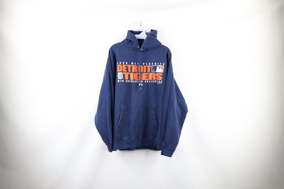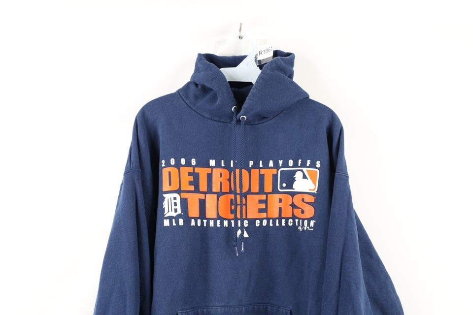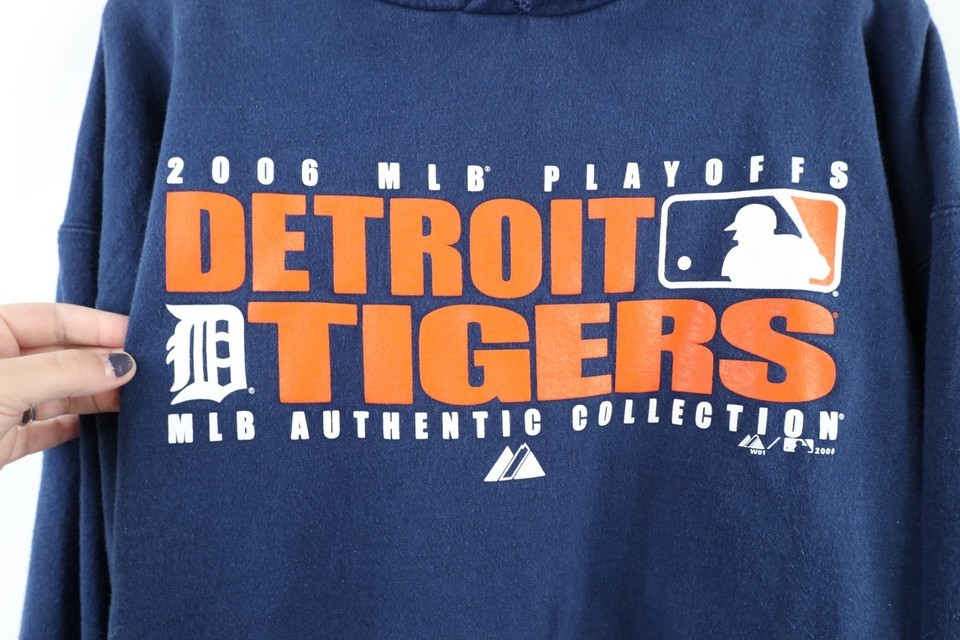 Vintage Majestic Mens Large Faded Spell Out 2006 Playoffs Detroit Tigers Hoodie
