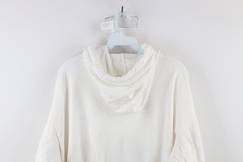 USA made. Missing metal piece on the right side drawstring on hood. Boxy fit