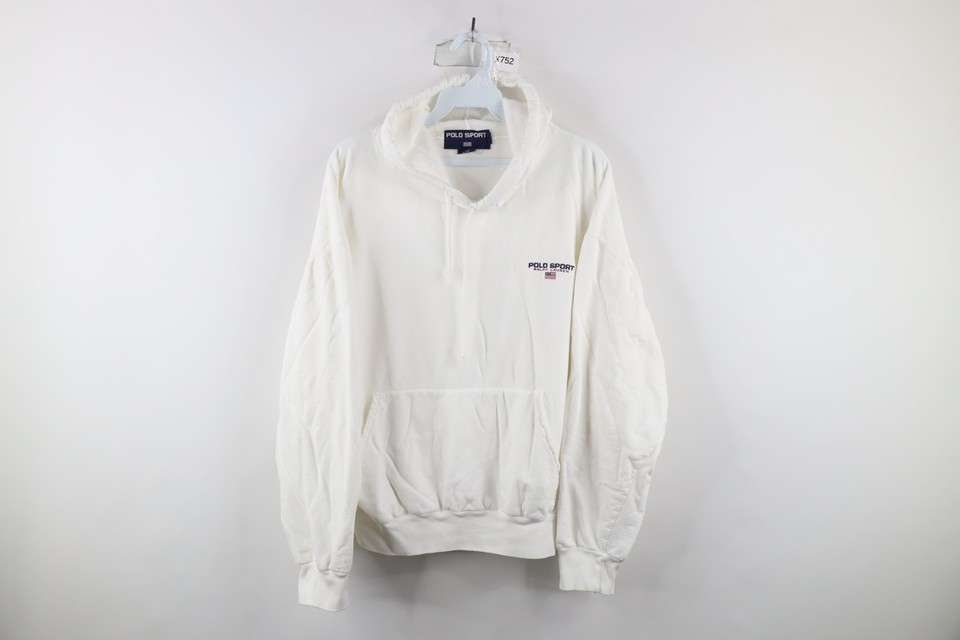 Vtg 90s Polo Sport Ralph Lauren Mens M Boxy Fit USA Flag Hoodie Sweatshirt USA