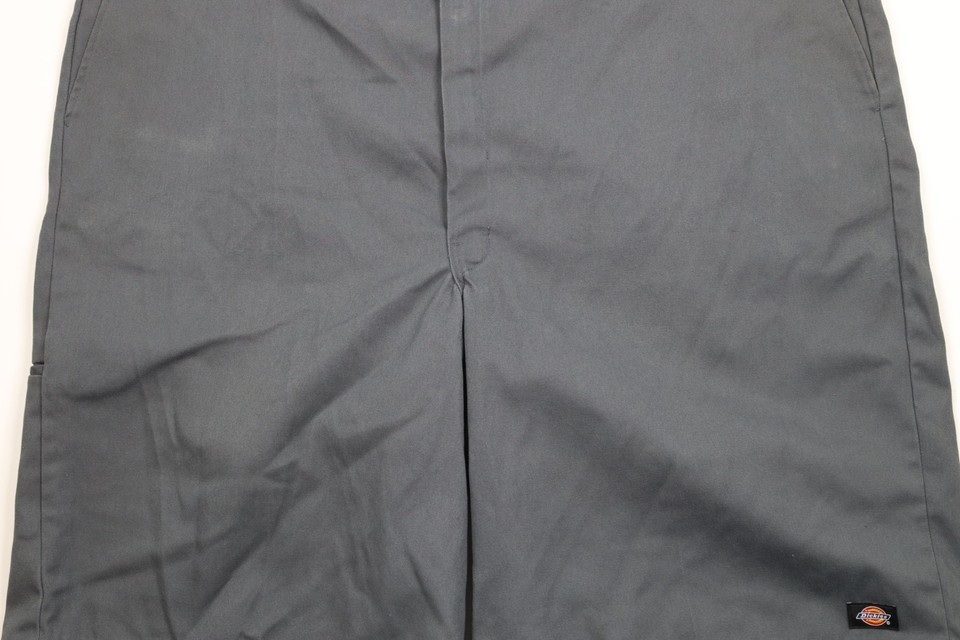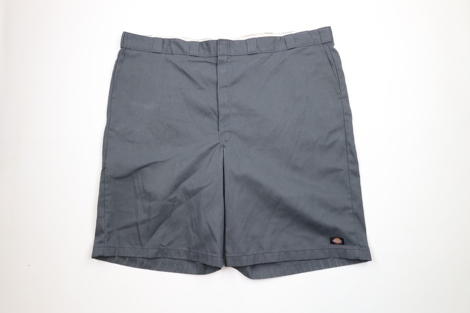 Vintage Dickies Mens 54 Faded Spell Out Loose Fit Workwear Mechanic Shorts Gray
